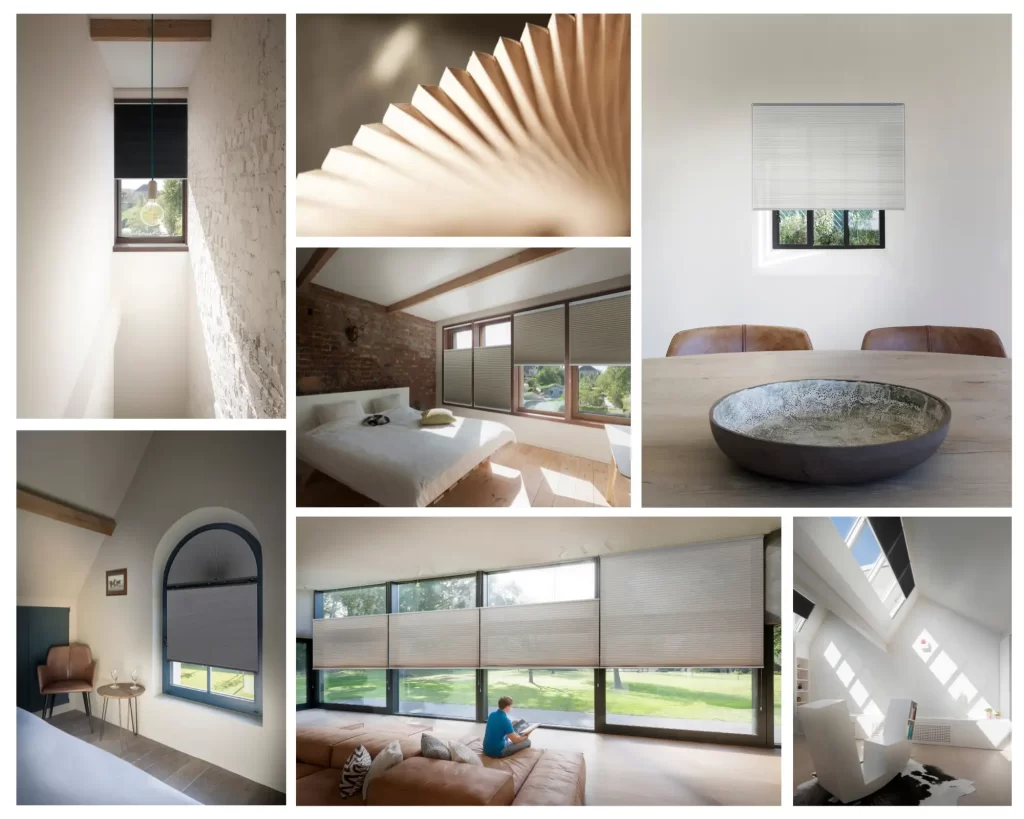 Deze honingraat plissé’s zijn perfect voor elk type raam en elke ruimte – van schuine tot ronde ramen, van woonkamer tot badkamer.